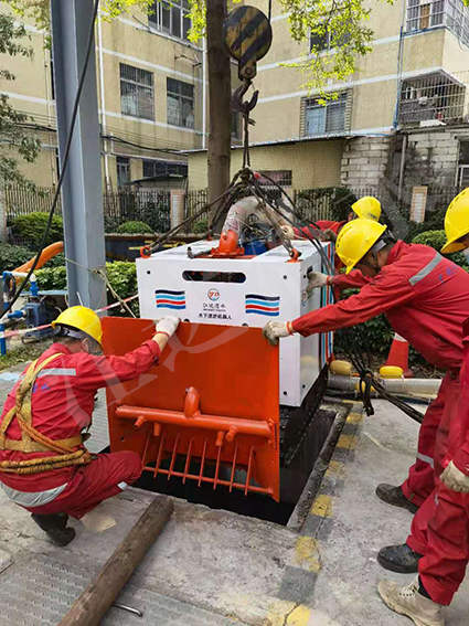 现在我们来欣赏在9号泵站进行的机器人不停产清淤作业的现场照片。