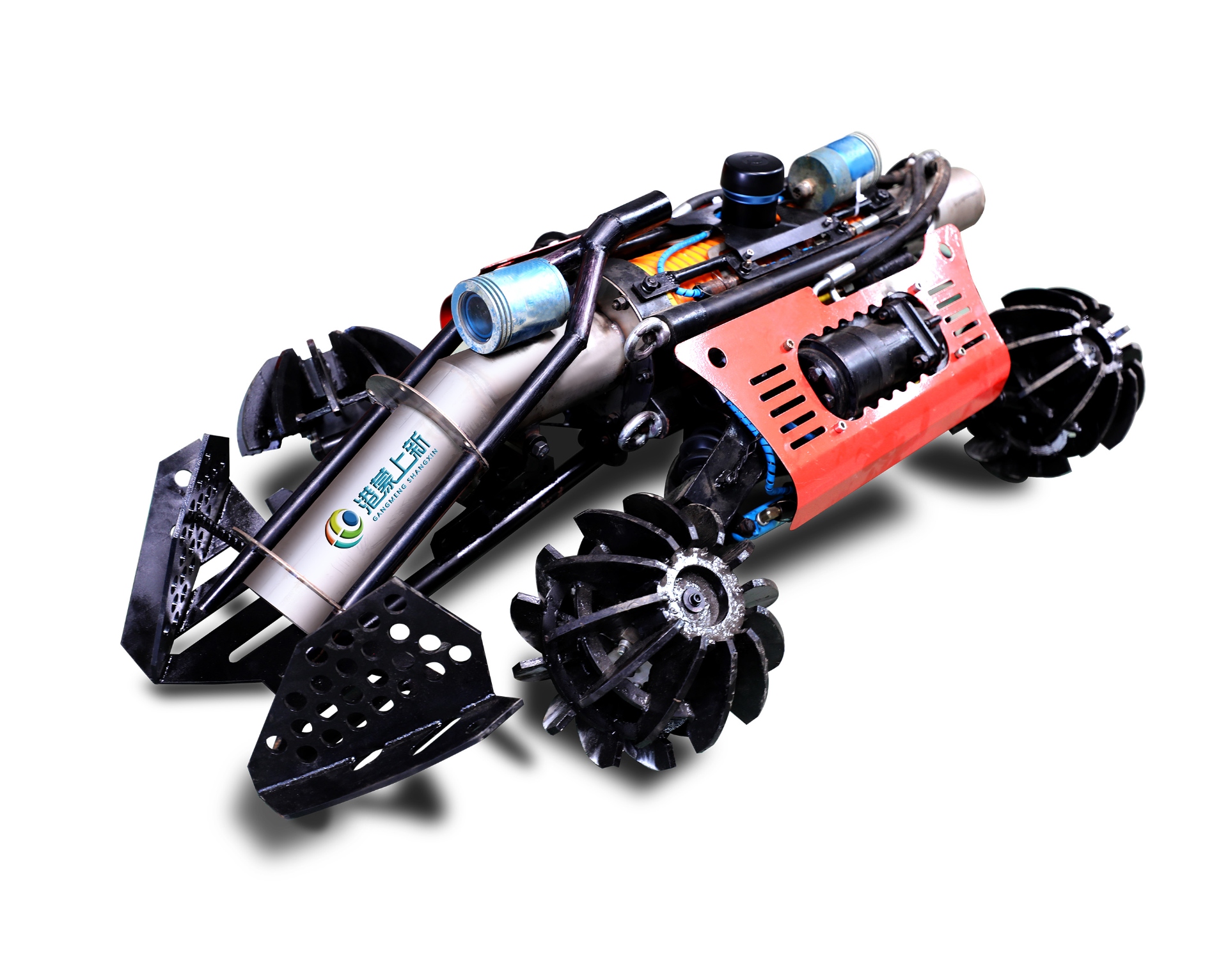 机器人采用创新的多轴伸缩式滚轮底盘设计,这一独特结构使其能够紧密贴合管道内壁,如同在管道内稳稳 “扎根”。这种紧密贴合不仅大幅降低了机器在行进过程中出现打滑的风险,还显著增强了机器的负重能力,确保在复杂管道环境中稳定、高效地作业,为清淤工作的顺利开展奠定坚实基础。